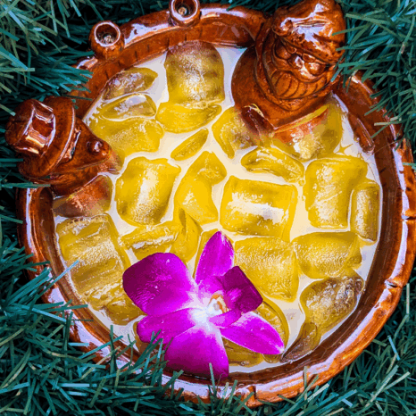 Reservations: are encouraged. Click here to our reservation page. Select your date, and then scroll down to featured events. Select your seating type: Sippin’ Santa Table is a table in our tiki room, Sippin’ Santa Bar is a seat at the Tiki bar, Sippin’ Santa Snow Globe Table is a table in our giant heated outdoor snow globe.